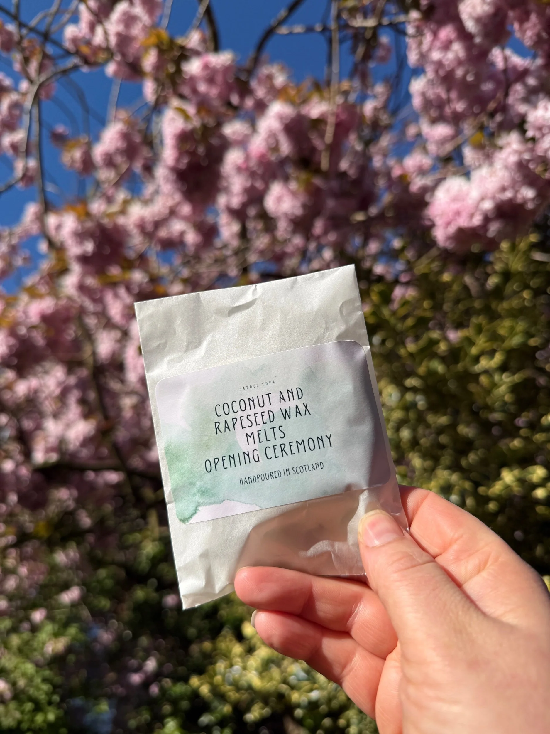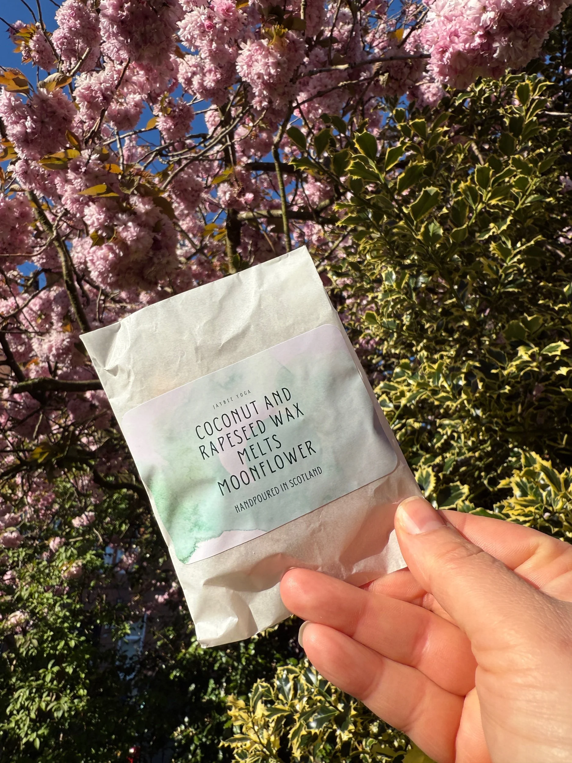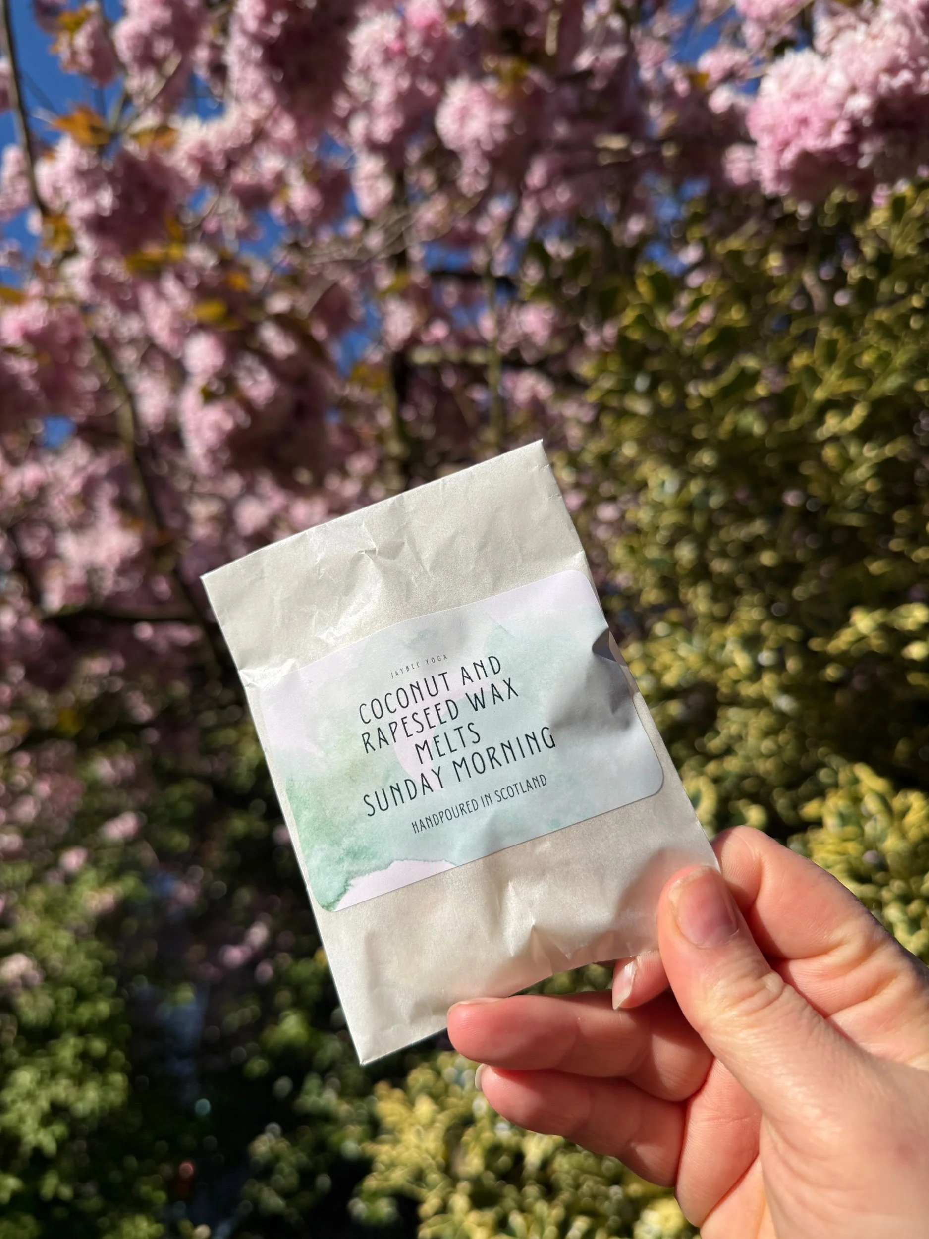 Coconut and rapeseed oil wax melts in glassine bags. These are hand blended and poured in Scotland. Vegan and plant based. Made for use in wax melt burners. Each wax melt bag weighs 38g